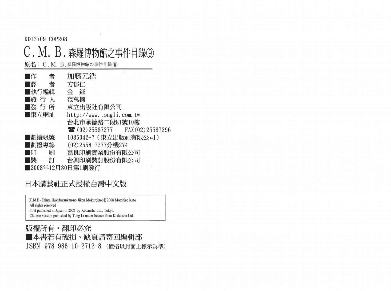 《C.M.B.森罗博物馆之事件目录》目录