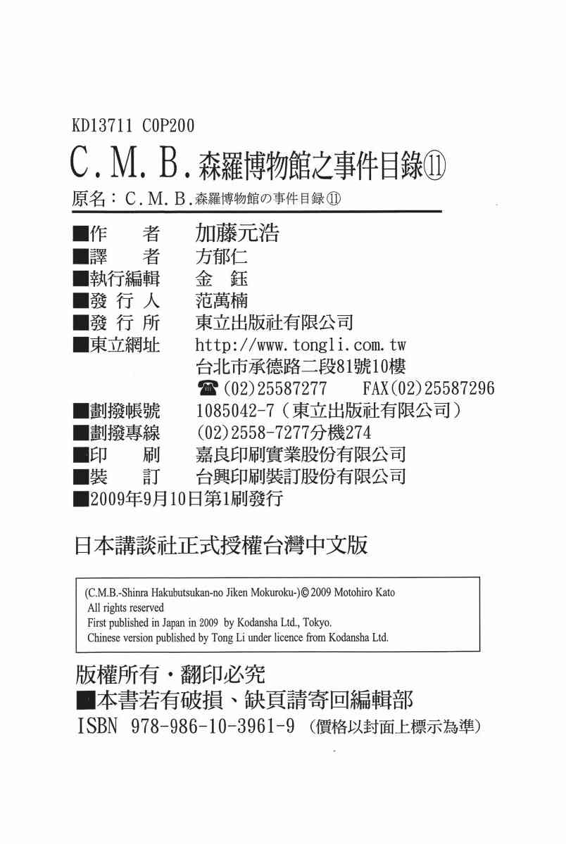《C.M.B.森罗博物馆之事件目录》目录